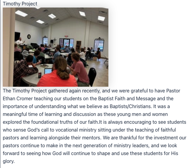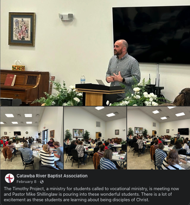 Youth Mentoring Program sponsored by the Catawba River Baptist Association in partnership with CRBA Youth Pastors to help guide and mentor youth and college students that sense that God has a calling on their life. Contact Pastor Greg or Pastor Eddy if you would like more information about this program!