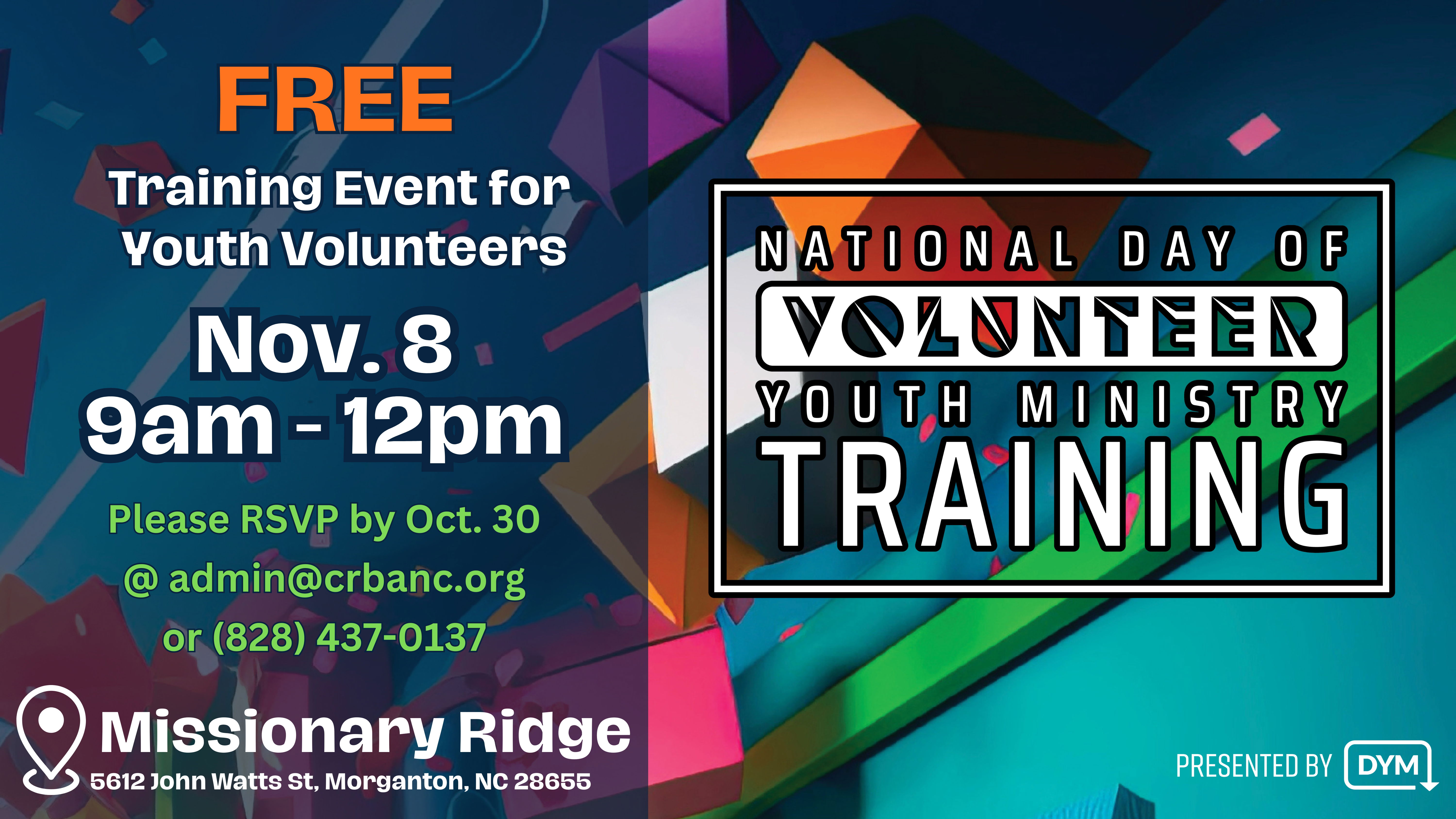 Youth Ministry Volunteer Training Event Saturday November 8th from 9am -12 noon